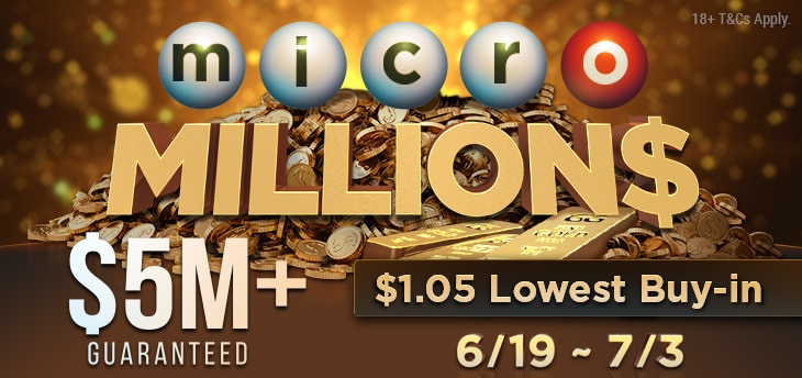 PlayGG dezvăluie astăzi detalii despre viitoarea serie de turnee online microMILLION$ care va rula în Rețeaua GG și care se lansează pe 19 iunie, urmând să se desfășoare până pe 3 iulie. Buy-in-urile evenimentelor pornesc de la $1,05 și urcă până la $25, atât cât este intrarea în Main Event. În total, vor fi câștigate premii de peste $5.000.000 pe parcursul întregului microMILLION$.